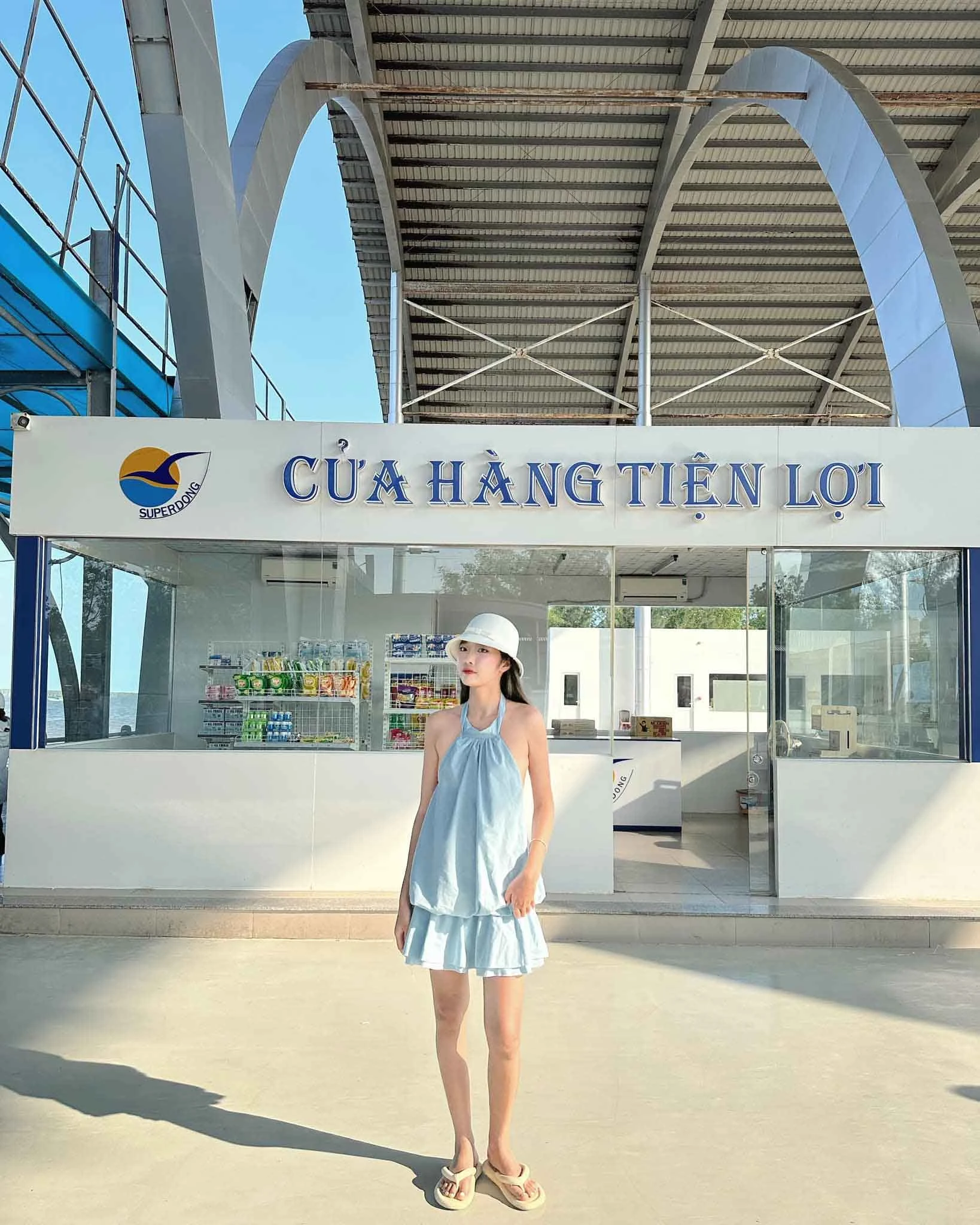 Điểm dừng chân tại cảng Trần Đề với đồ ăn vặt và nước uống.